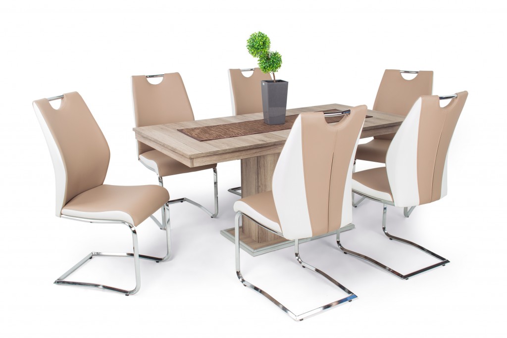 A modern konyha tökéletes eleme az Adél szék. Műbőr kárpitozásának köszönhetően praktikus, könnyen tisztítható. Két színben kapható, barna és beige árnyalatokban. A krómozott fém lábaknak köszönhetően tökéletesen stabil ülőalkalmatosság. Rendkívül kényelmes a háttámla és az ülőfelület egyaránt. Egyszerű, letisztult mégis elegáns megjelenésének köszönhetően kiválóan illik a modern hangulatú otthonokba.
