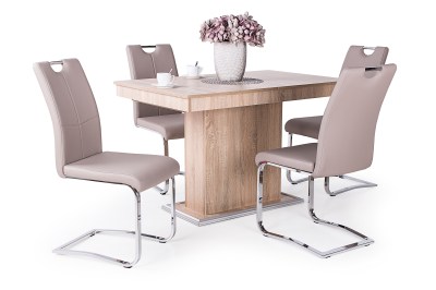 A Mona szék krómozott fém lábaival és műbőr kárpitjával a modern stílusú otthonokba illik a legjobban. A kényelmes ülőfelület és háttámla ideális választás lehet mindazok számára, akik az étkezőben igényes bútorokat szeretnének elhelyezni. 4 különleges színben kapható: beige, szürke, barna és fekete.